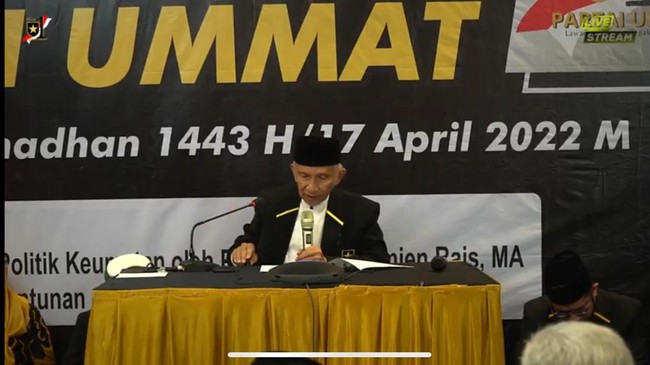 "Saya ingin membuat rekomendasi untuk rezim Jokowi-Luhut, pertama seyogianya Pak Luhut segera mengundurkan diri," kata Amien Rais di acara Milad 1 Tahun Partai Ummat, yang disiarkan langsung di akun YouTube Partai Ummat, Minggu (17/4/2022).
