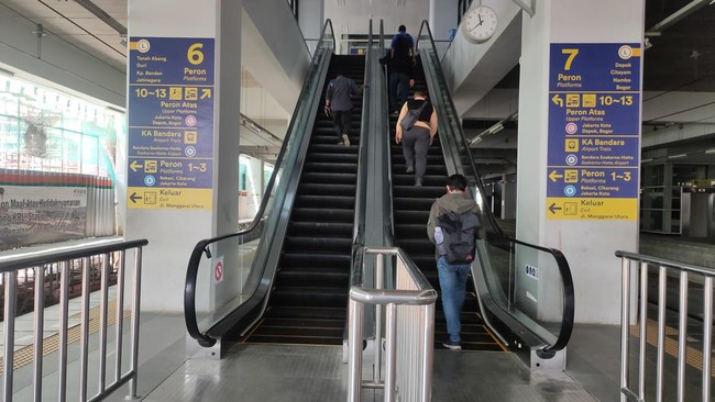 Selain itu, sempat terlihat penumpang berhenti di atas eskalator yang menuju peron 6-7 tersebut. Dia tampak melihat ke lantai eskalator memastikan apakah eskalator itu berfungsi atau tidak.