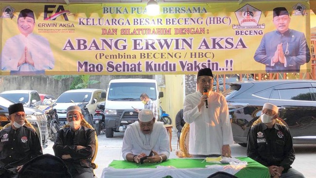 Selama bulan suci Ramadan Erwin Aksa melakukan safari politik ke sejumlah tokoh. Pada Minggu (17/4) dia menghadiri buka bersama Keluarga besar Yayasan Haji Beceng Center (HBC) di pelataran kantor sekretariat Yayasan HBC di Taman Beceng, Komplek Perumahan Daan Mogot Estate, Cengkareng, Jakarta Barat.