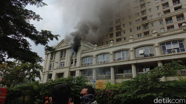 Kebakaran terjadi di Apartemen Grand Palazo, Kemayoran, Jakarta Pusat. Sejumlah mobil pemadam kebakaran dikerahkan.