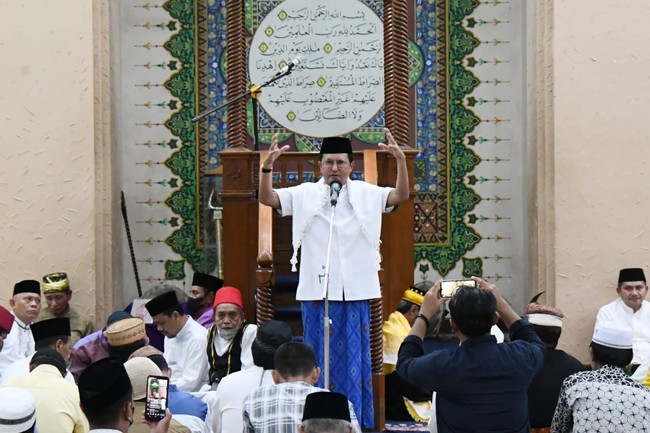 Wakil Ketua MPR RI Fadel Muhammad menghadiri peringatan Nuzululqur'an bersama jamaah di Masjid Baiturahim, Kota Gorontalo Senin (18/4). Ia berbicara mengenai kemuliaan malam peristiwa turunnya Al-Qur'an ke bumi pada 17 Ramadan tersebut.