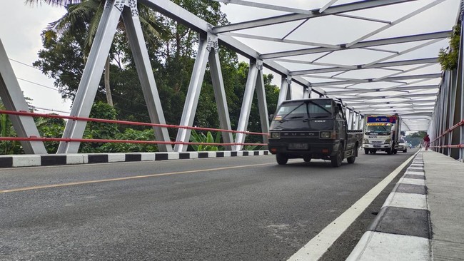 Pantauan detikcom di lokasi, Selasa (19/4/2022), tampak lantai jembatan sudah tidak lagi berlubang. Jembatan itu juga sudah dilalui oleh pengguna motor ataupun mobil.