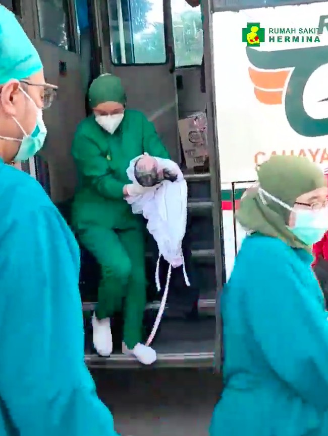 Dalam video yang beredar, tampak petugas medis keluar dari bus sambil membawa bayi yang baru dilahirkan. Bayi itu lalu cepat dibawa ke rumah sakit (RS).