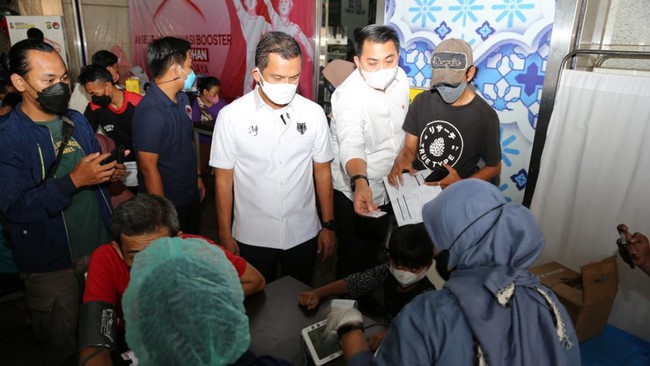 "Target kita hari ini ada 2.200 yang divaksin. Kami milih Tanah Abang jadi tempat vaksinasi karena di sini tempat pertemuan antara penjual dan pembeli dan cukup banyak di sini," papar Mukti.
