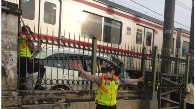Posisi terakhir mobil tersebut terjepit di antara kereta dengan pagar pembatas rel. Proses evakuasi hingga saat ini masih berlangsung.