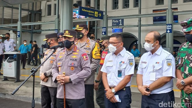 Kapolri Jenderal Listyo Sigit Prabowo melakukan tinjauan kesiapan mudik di Stasiun Pasar Senen, Jakarta Pusat, sore hari ini. Sigit meminta instansi-instansi, khususnya swasta, mempercepat cuti lebaran guna menghindari kemacetan.