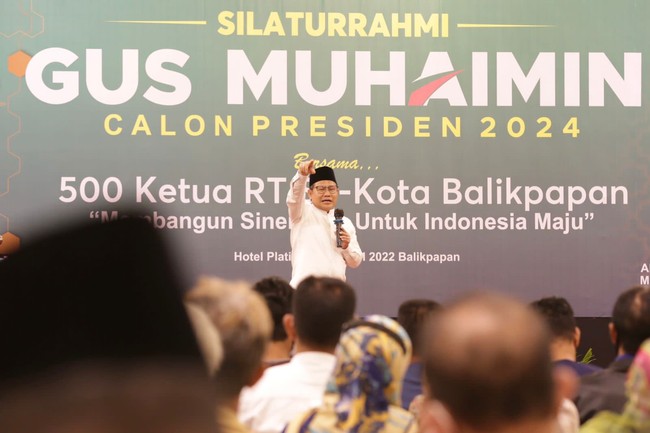 Sebanyak 500 ketua Rukun Tetangga (RT) di Kota Balikpapan mendeklarasikan dukungan kepada Ketua Umum Partai Kebangkitan Bangsa (PKB) Abdul Muhaimin Iskandar untuk maju sebagai xalon presiden di tahun 2024. Sepanjang jalannya deklarasi, seluruh peserta ramai menyuarakan yel-yel 'Gus Muhaimin Presidenku' sebagai bentuk dukungan.