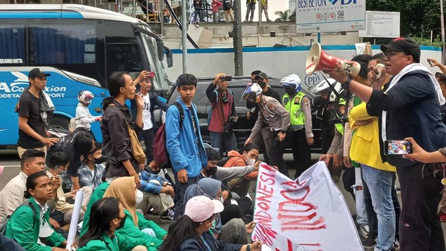 Massa demo 21 April dari kelompok lain mendatangi kawasan Patung Kuda. Mereka tergabung dalam aliansi Poros Mahasiswa Pejuang Rakyat Indonesia (PMPRI).