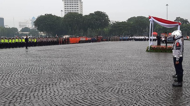 Polri menggelar apel pasukan Operasi Ketupat 2022 dalam rangka pengamanan mudik Lebaran. Polri menyiapkan 2.702 posko pelayanan dan pengamanan mudik hingga gerai vaksinasi di titik-titik jalur mudik.