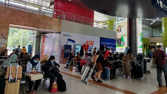 Pemerintah meminta masyarakat melakukan perjalanan mudik lebih awal. Sejumlah warga di Stasiun Gambir, Jakarta Pusat (Jakpus), pun mengikuti anjuran pemerintah untuk mudik lebih awal.