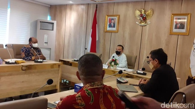 Hal itu disampaikan Ketua MRP Timotius Murib dalam audiensi dengan Wakil Ketua DPR Sufmi Dasco Ahmad di Kompleks Parlemen, Jakarta, Selasa (26/4/2022). Pantauan detikcom di lokasi, hadir pada pertemuan tersebut Ketua MRP Timotius Murib, Wakil Ketua MRP Yoel Luiz Mulait, Ketua Panitia Musyawarah MRP Benny Sweny, tenaga ahli Joram Wambrauw, staff khusus MRP Andi Andreas Goo, staff khusus Onias Wenda hingga Direktur Eksekutif Amnesty International Indonesia Usman Hamid.