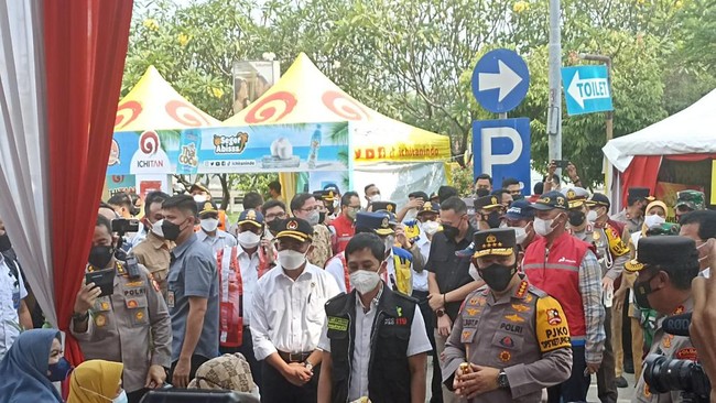 Kapolri Jenderal Listyo Sigit Prabowo meninjau pos terpadu Ops Ketupat Lodaya 2022 di rest area Km 57 Tol Cikampek. Sigit mengimbau masyarakat agar melakukan perjalanan mudik sebelum 28 April.