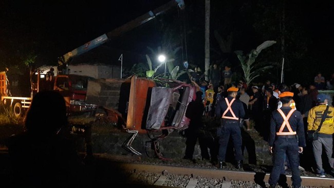 "Kurang lebih pukul 19.43 WIB KA Lodaya terhalang kendaraan di perlintasan 720. (Ada) truk yang mogok ditarik oleh kendaraan lain sehingga terjebak, menyebabkan KA Lodaya tertemper truk tersebut," kata Supriyanto kepada wartawan, Selasa (26/4).