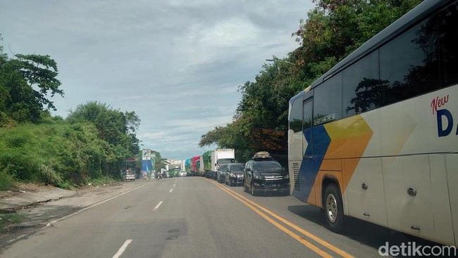 Antrean ini imbas kepadatan di dalam pelabuhan. Polisi kemudian melakukan rekayasa lalu linta dengan menerapkan buka tutup jalan di Cikuasa Atas. Akibatnya, antrean di tol pun tak terhindarkan.