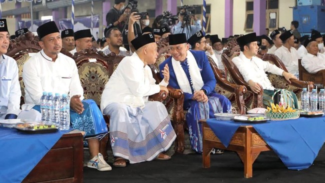 Hal ini disampaikan AHY saat menghadiri pelantikan Forum Komunikasi Kyai Langgar (Fokkal) di Pondok Pesantren (Ponpes) Ibnu Sina, Banyuwangi di Jawa Timur, Minggu kemarin seperti tertera dalam keterangan tertulis Partai Demokrat, Rabu (27/4/2022). AHY menyerukan slogan 'Indonesia for All'.