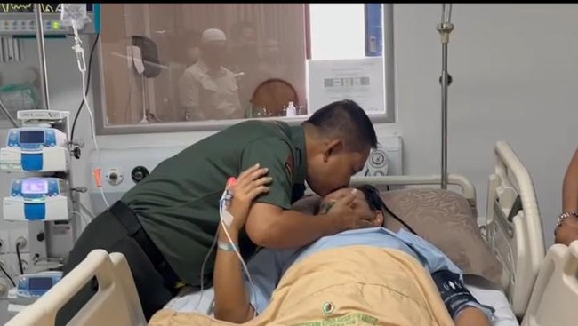 Dalam video yang dilihat detikcom, Kamis (28/4/2022), Dudung memakai seragam dinas berwarna hijau berdiri di samping tempat tidur Hendropriyono. Dudung juga terdengar meminta Hendropriyono beristirahat.