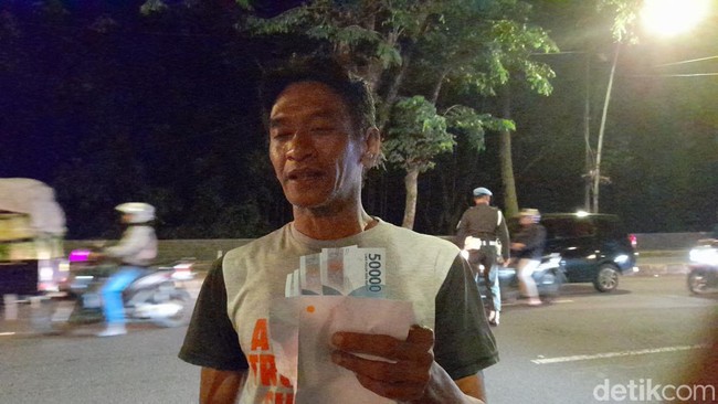 Seorang warga bernama Mustakim mengaku mendapat amplop berisi uang langsung dari tangan Presiden Jokowi. Ia menyebut akan menggunakan uang itu untuk hari Lebaran dan membayar zakat fitrah.