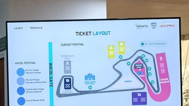 Vice Managing Director Organization Committee Jakarta E-Prix 2022 Gunung Kartiko mengatakan tiket ini masuk ke Ancol Festival. Lokasinya berada di sisi barat kawasan Ancol, Jakarta Utara, dan jauh dari sirkuit Formula E.