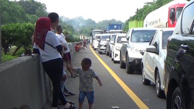 "Saya sampai sini setengah 7 pagi sudah kayak gini, nggak gerak (dari) Bandung (mau) ke Semarang mudik. Hampir tiga jam nggak gerak, nggak ada pengalihan," ujar salah satu pemudik, Adi.
