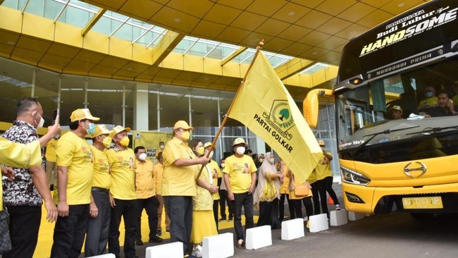 Ketua Umum DPP Partai Golkar Airlangga Hartarto secara resmi melepas perjalanan bus mudik gratis program dari partai Golkar hari ini. Sebanyak 880 pemudik diberangkatkan menuju berbagai daerah di timur Pulau Jawa dan Sumatra dengan menggunakan 20 bus.