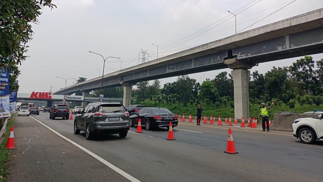 Pantauan detikcom, lokasi untuk masuk ke area contraflow telah ditutup dengan traffic cone. Mobil yang ke arah Cikampek tidak bisa masuk seperti sebelumnya.