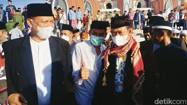 Pantauan detikSulsel, Andi Sudirman beserta keluarganya tiba di kawasan lokasi pelaksanaan salat Id, Senin (2/5/2022), sekitar pukul 06.20 Wita. Andi yang tampak mengenakan jas hitam, kemeja putih serta peci hitam, sempat mengajak salah satu putranya begitu tiba langsung masuk dan menuju ke dalam kemudian duduk di barisan saf depan yang sudah disediakan.
