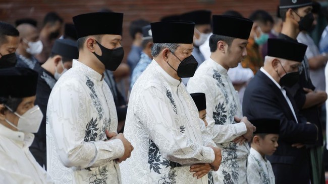 Pantauan detikcom, Senin (2/5/2022) nampak putra sulung SBY, Agus Harimurti yudhoyono (AHY), dan sang adik Edhi Baskoro Yudhoyono (Ibas) turut salat Id bersama. Salat Id digelar dengan menerapkan protokol kesehatan. Para jamaah menggunakan masker dan tetap menjaga jarak dalam barisan.