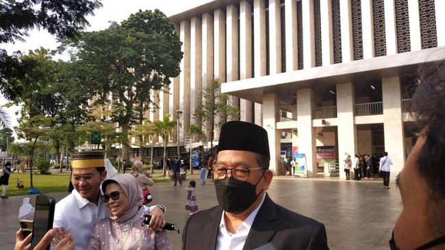 Masjid Istiqlal, Jakarta, kembali menggelar salat Idul Fitri setelah dua tahun tidak ada salat berjemaah karena pandemi COVID-19. Wakil Menteri Agama Zainut Tauhid Sa'adi merasa bersyukur bisa kembali salat Id di Istiqlal.
