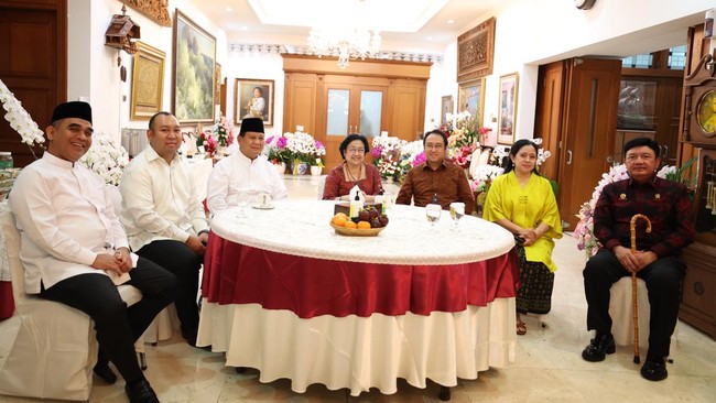 "Ya tadi Pak Prabowo alhamdulillah bisa bersilaturahmi dengan Ibu Megawati. Pembicaraan santai, tidak berbicara politik, tradisi-tradisi yang sudah lama sekali tidak bicara tentang hal-hal yang serius tapi pembicaraan santai tentang makanan, terus cerita-cerita ringan tentang sejarah," kata Muzani.