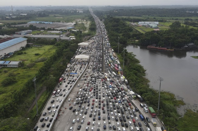 "Jangan semuanya nanti kembali arus baliknya semuanya di hari Sabtu dan hari Minggu, pasti akan terjadi titik-titik kemacetan, terutama di tol, maupun di jalan nasional, maupun di Merak-Bakauheni," ujar Jokowi.