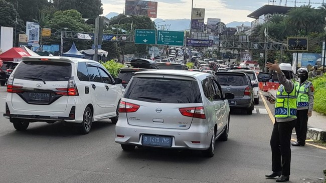 Polisi menerapkan sistem satu arah atau one way dari Puncak, Bogor, menuju Jakarta. Arus lalu lintas dari arah Jakarta menuju Puncak bakal ditutup sementara.