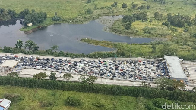 Tampak arus lalu lintas dari GT Cikampek Utama hingga Km 62 menuju Jakarta tersendat didapati kendaraan. Setelah itu, lalu lintas kembali terurai.