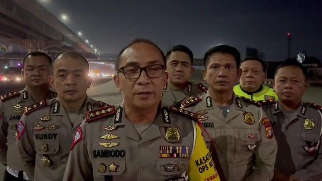 "Kecuali untuk besok karena memang one way-nya sampai di depan pos pam ini maka penutupan Cawang akan kita laksanakan selama one way dari jam 5 besok pagi, Cawang di antara Tol Japek maupun Tol Priok yang arah Cikampek, maupun yang Halim ke Cikampek, Jatibening JOR arah Cikampek, dari Cilincing ke Cikampek, semua gerbang Tol Bekasi, Jatiwaringin semua kita tutup, ke arah Cikampek kita tutup, karena kalau nggak adu bagong," kata Dirlantas Polda Metro Jaya Kombes Sambodo di Pos Pam Km 3 Tol Cikampek, Jumat (6/5/2022).