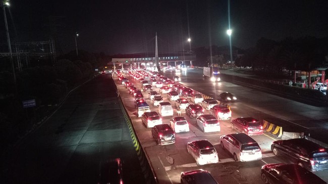 Gerbang Tol Cikupa, Kabupaten Tangerang, mulai dipadati kendaraan mobil arus balik malam ini. Antrean kendaraan terjadi di Gerbang Tol Cikupa menuju arah Jakarta.