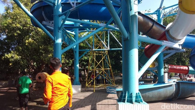 Sembilan pengunjung terluka akibat perosotan kolam renang Kenjeran Water Park (Kenpark) di Surabaya, Jawa Timur, ambruk dari ketinggian 8 meter. Pengunjung yang berada di lokasi histeris.