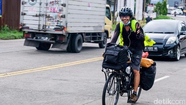 Setelah merayakan lebaran di kampung halaman, Veri lagi-lagi kembali ke perantauan memakai sepeda gowesnya. Berangkat dari Palembang pada Kamis (5/2) subuh.