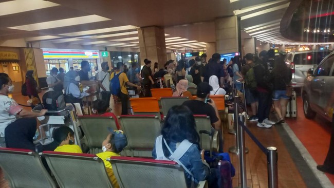 Pantauan detikcom di lokasi, Minggu (8/5/2022) pukul 18.30 WIB kepadatan penumpang yang baru tiba terlihat jelas. Hilir mudik penumpang hingga antrean menunggu taksi pengantar masih terjadi di Terminal 2 Bandara Soetta hingga malam ini.