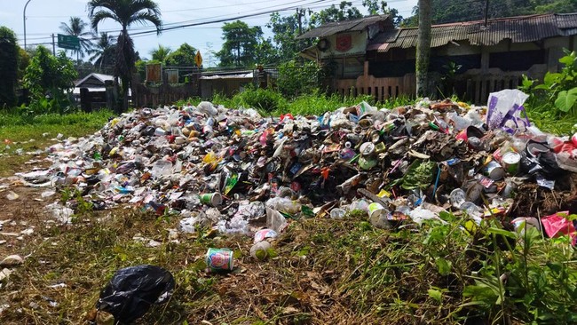 Sampah terlihat menumpuk di dekat permukiman warga. Lokasi tumpukan sampah itu sekitar 500 meter dari bibir pantai.