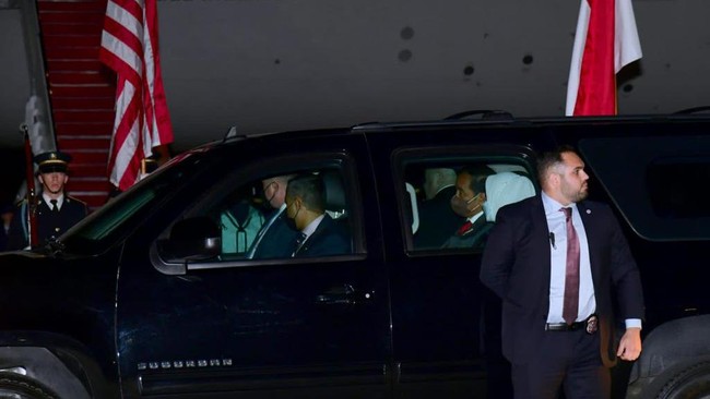 Presiden Joko Widodo (Jokowi) dan Iriana Joko Widodo beserta rombongan tiba di Pangkalan Militer Andrews, Washington DC, Amerika Serikat. Jokowi dan Iriana tiba di AS setelah menempuh kurang lebih 24 jam penerbangan dari Jakarta dengan transit di Amsterdam, Belanda.