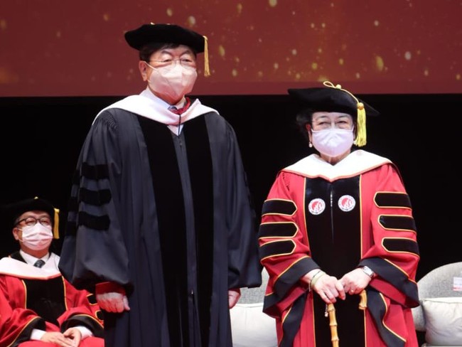 Megawati juga diberi gelar profesor kehormatan atas komitmen dalam mempromosikan diplomasi, seni budaya, dan ekonomi kreatif serta dalam menjamin pendidikan yang lebih baik melalui riset dan inovatif tidak hanya untuk warga negara Indonesia, tetapi juga untuk warga dunia, termasuk Korea Selatan.