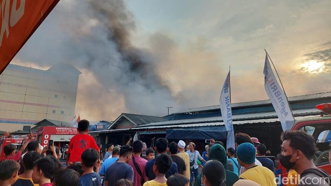 Pantauan detikcom, Rabu (11/5/2022), pukul 16.55 WIB, kepulan asap hitam membubung tinggi. Orang-orang berteriak 'ada api, ada api'.