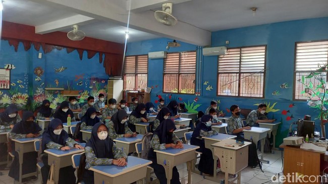 Pantauan detikcom di lokasi, Kamis (12/5/2022), pukul 09.39 WIB ruang kelas tampak penuh terisi oleh para siswa. Tidak ada lagi bangku kosong di antara para siswa.