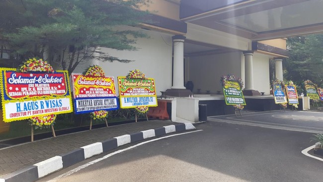 Pantauan detikcom di depan kantor Setda Banten, Kamis (12/5/2022), tampak karangan bunga ucapan selamat dari sejumlah kepala dinas. Salah satunya dari Kadis Dindikbud Banten Tabrani.