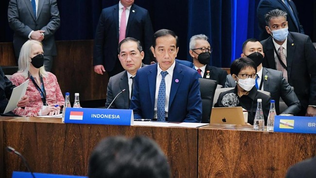 Jokowi mengatakan perang di Ukraina melemahkan multilateralisme. Selain itu, perang tersebut berpotensi memecah belah hubungan antarnegara.