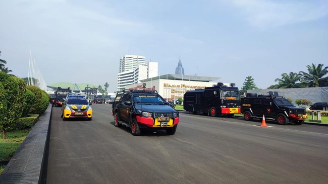 Pantauan detikcom di gedung MPR/DPR RI, Sabtu (14/5/2022), pukul 09.00 WIB, terlihat kendaraan taktis terparkir di dalam gedung DPR RI. Polisi terlihat sudah mulai berjaga.