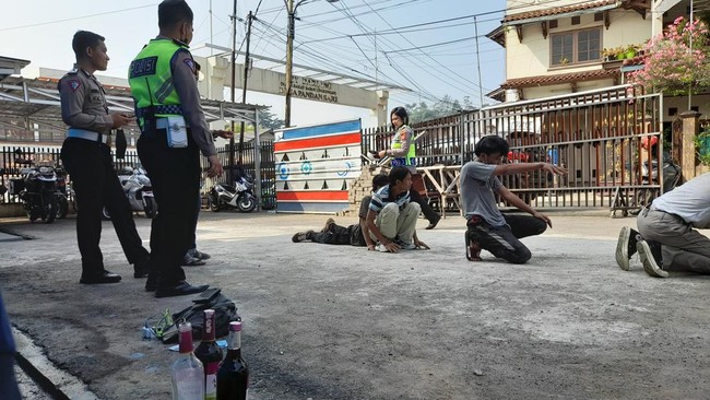 "Empat pemuda ini melintas di Jalan Raya Puncak, mereka dari Jakarta, mau wisata lah ya di Puncak. Kita berhentikan, kita periksa, ternyata benar ada 1 botol minuman yang sisa (sudah diminum) dan 2 botol isi masih penuh," beber Dicky.