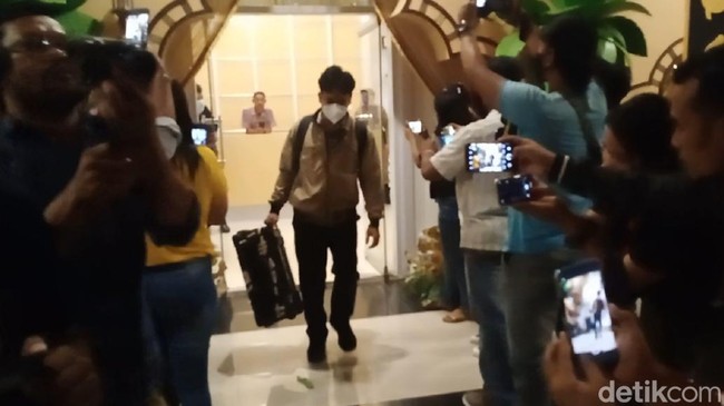 Para penyidik kemudian turun dari mobil. Beberapa orang terlihat membawa koper besar dan langsung masuk ke Balai Kota Ambon dan langsung naik ke ruang kerja RL.