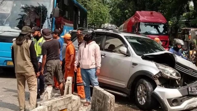 Sebuah mobil terlibat kecelakaan tunggal di daerah Pondok Indah, Kebayoran Lama, Jakarta Selatan. Mobil itu disebut menabrak separator di jalur busway hingga kondisinya terguling.