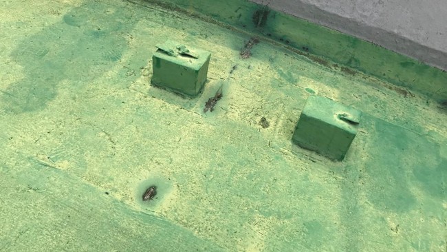 Di bentangan luas kura-kura hijau itu, ada beberapa bagian cat tebal yang sudah berongga. Ada ruang udara di antara beton dan cat tebal dome saat ditekan atau diinjak.