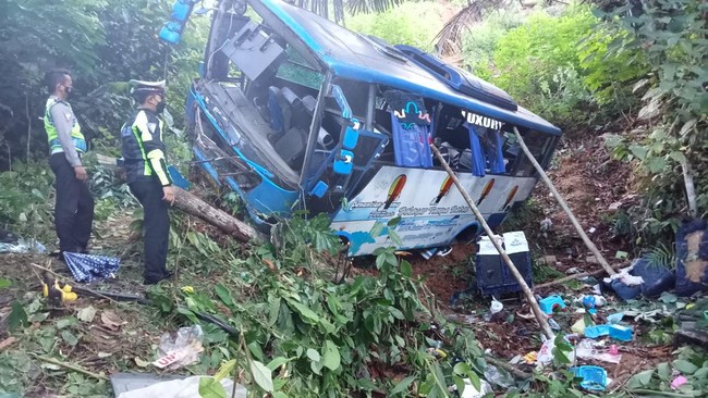 "Rem dinyatakan tidak berfungsi atau blong sehingga pengemudi hilang kendali dan masuk serta terperosok ke dalam jurang sebelah kanannya lebih kurang kedalaman lebih kurang 50 m," ujar Pandra kepada detikcom, Rabu (18/5/2022).
